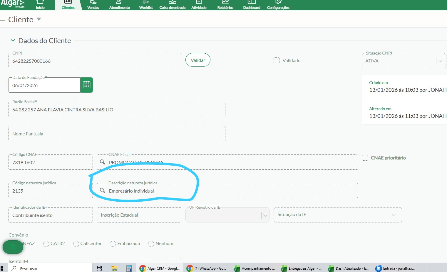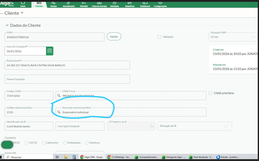 QUANDO FOREM FAZER CADASTRO DE CNPJ NOVO, NORMALMENTE ESSE CAMPO VAI FICAR EM BRANCO, É SÓ DIGITAR